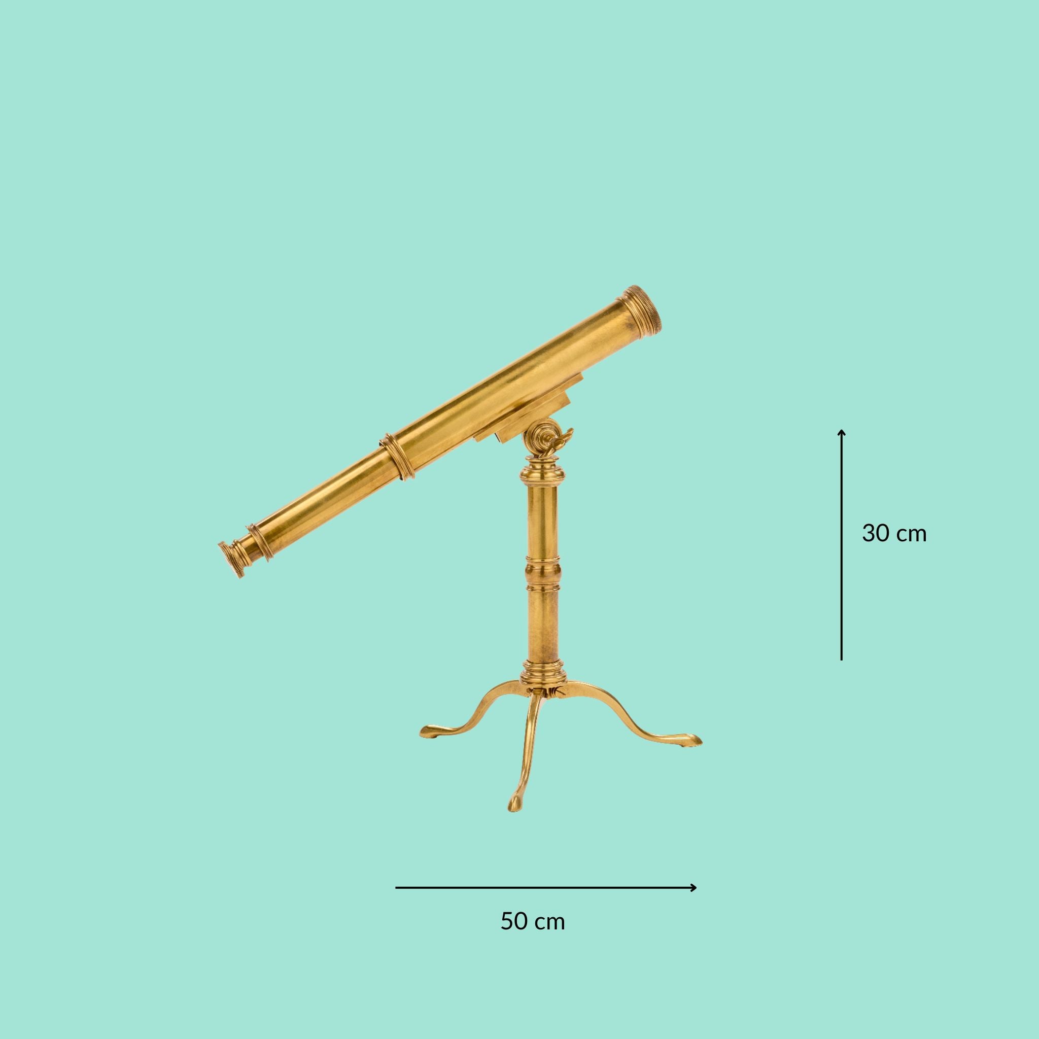 Telescopio in ottone naturale, un pezzo decorativo che unisce il fascino vintage a dettagli artigianali. Perfetto come accessorio da tavolo per aggiungere eleganza e carattere a qualsiasi spazio.