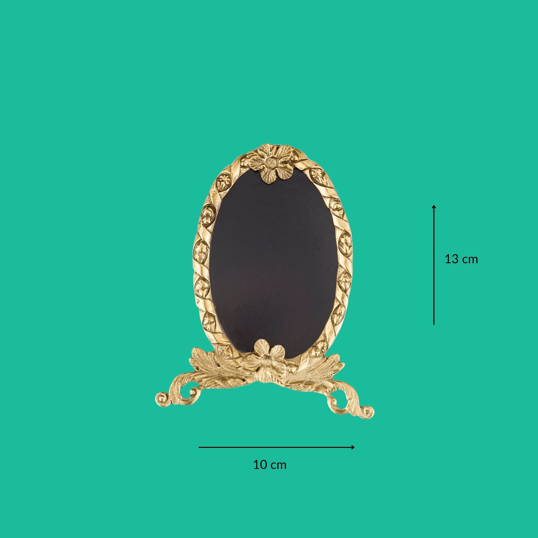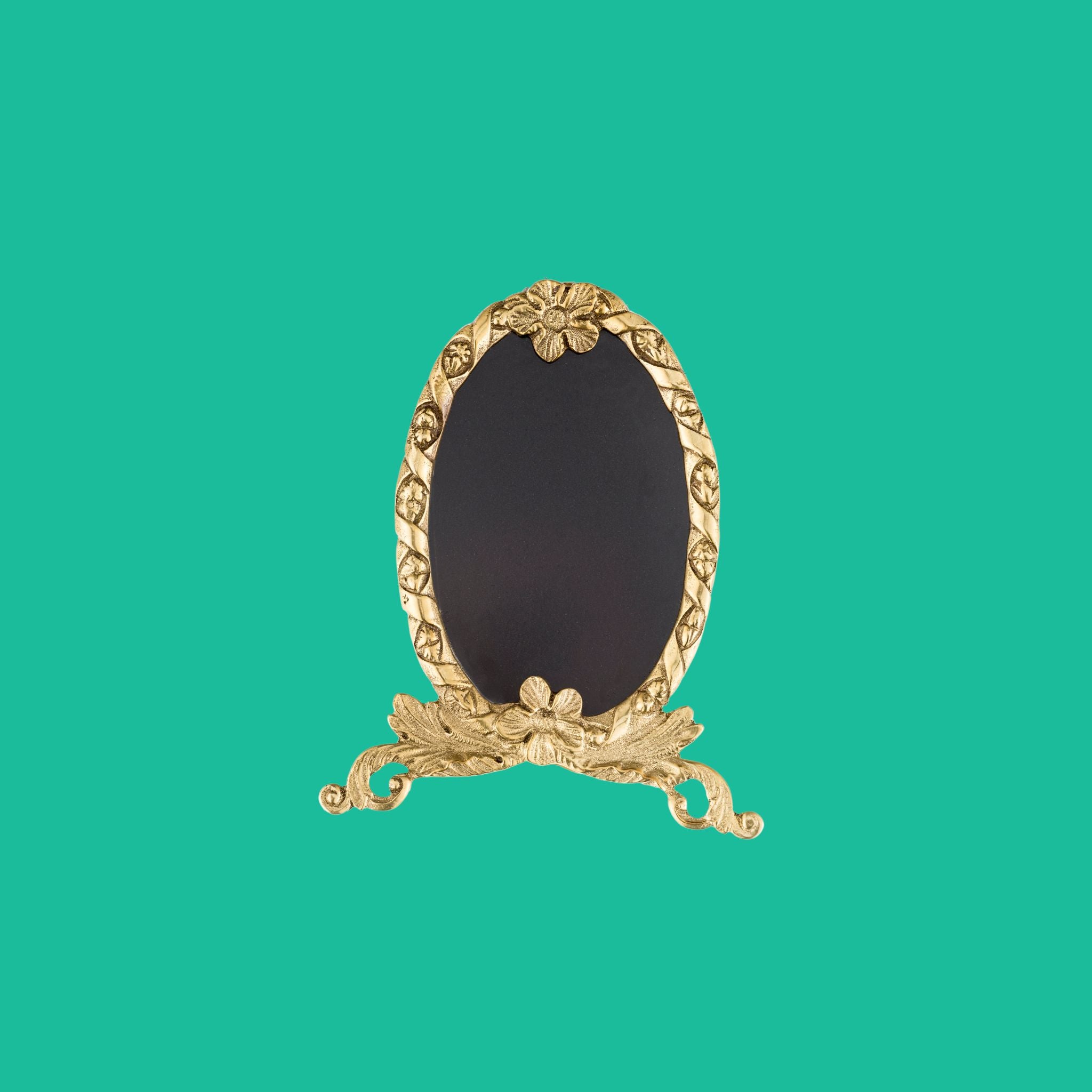 Una deliziosa cornice da tavolo in ottone ornata con intricati dettagli floreali. Perfetta per aggiungere un tocco di eleganza e fascino alle tue foto preferite e a qualsiasi spazio!