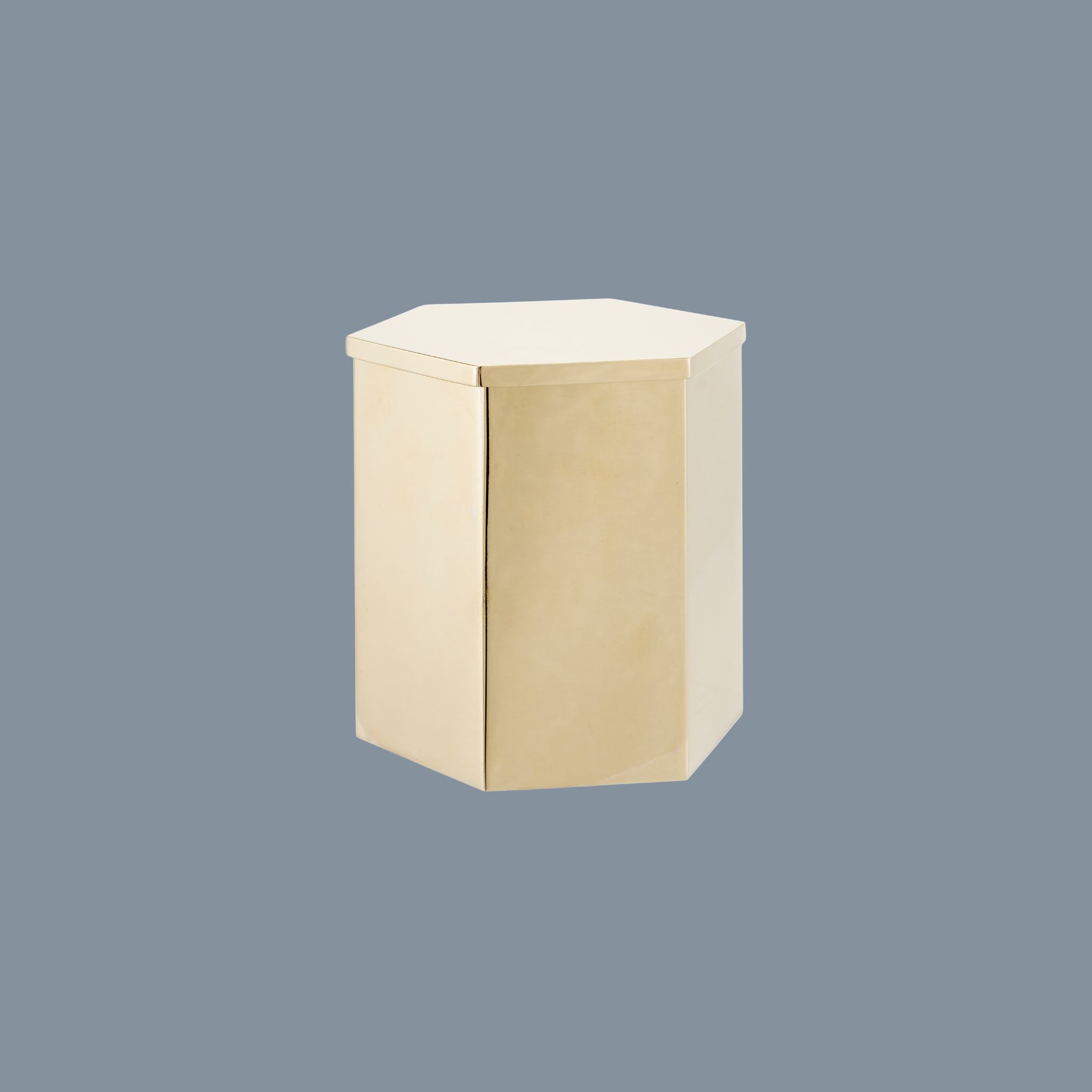 Hexagonal brass box with lid, an accessory with an original and sophisticated design. Perfect for holding small items with style and personality.